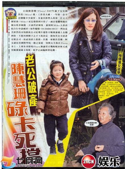 因为老公兼经理人钟家鸿(Mike)申请破产,令四十一岁的陈慧珊(Flora)要全面复出,挣钱帮补家计。据知,Flora已落实接拍无线于六月开拍的《冲上云霄II》,并以优惠价出席护肤品牌活动。要独力撑起这个家,更连累爱女到上海读国际学校的计划告吹,但Flora为了下一代的前途,宁愿苛刻自己,换平车住旧楼,也要供女儿在港升读名牌国际学校。