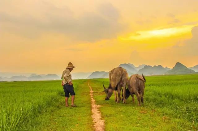 悠远的青峰山峦,恬静的小桥流水,芳草青青,碧波荡漾,耳边萦绕着鸟儿和田间牲畜发出的声音,连空气的味道都那么清香,仿若置身于桃花源的画卷之中!