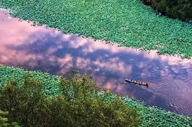 猫猫冲最适合在6月荷花初绽时去,夕阳西下的时候去,尖尖的远山,一抹夕阳,初绽的荷花,沉浸在遗世的美好里。
