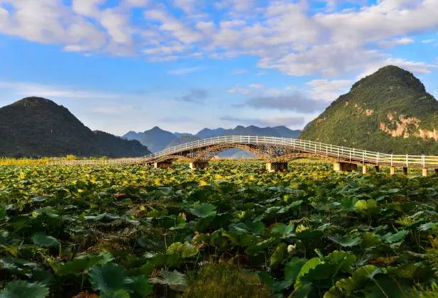 交通:可以坐飞机到文山普者黑机场,这个机场在砚山县,景区还有80多公里,需要乘文山-丘北的过路车(7:00-18:00,10分钟一班,31元)至丘北县后,再转乘巴士到普者黑景区。比较麻烦,不推荐。或者从机场直接打车到普者黑,费用一两百元。
