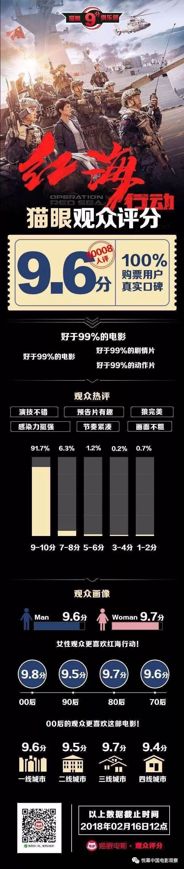 叫好又叫座的电影质量让《红海行动》成为了春节档的黑马,而评分越高,电影的后劲就会越强,排片也进一步上升,可见电影的后续票房会有非常亮眼的成绩。