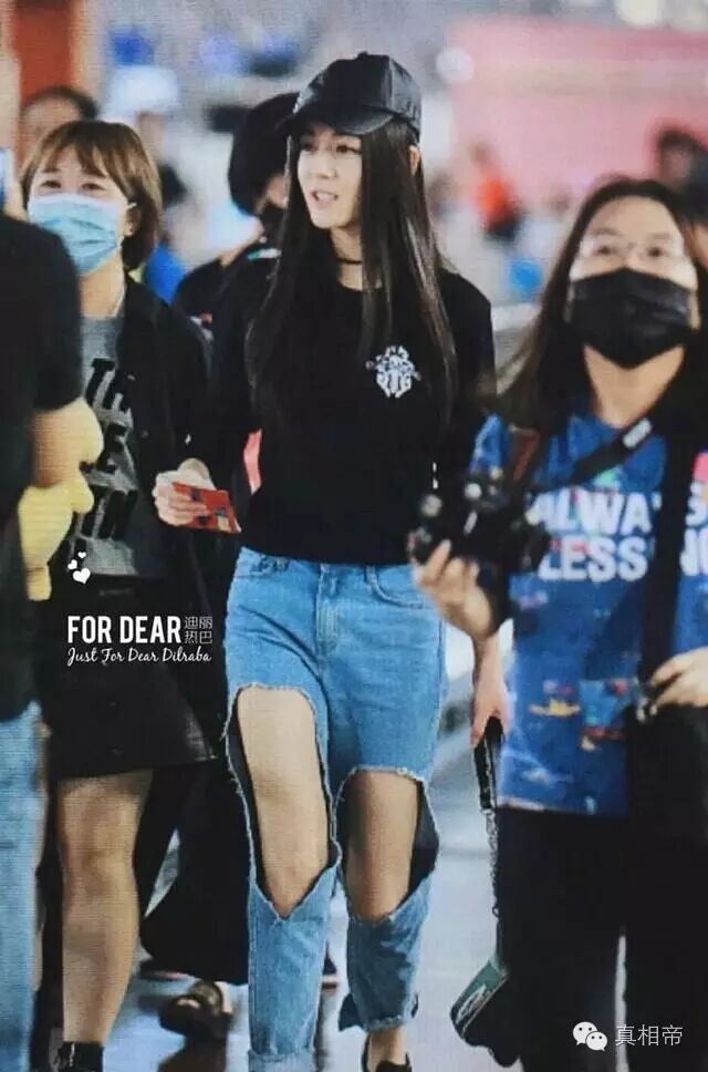 而她的立场look更是潮范十足,膝盖两个破洞让她的腿若隐若现,戴上一顶帽子很帅气,比娜扎要帅气多了。