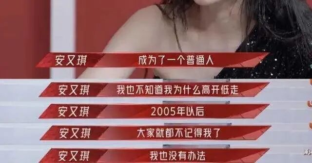 2005届《超女》的冠军安又琪,同样参加了《浪姐2》,但却舞蹈跳到一半就忘了动作,只能硬生生的鞠躬道歉。