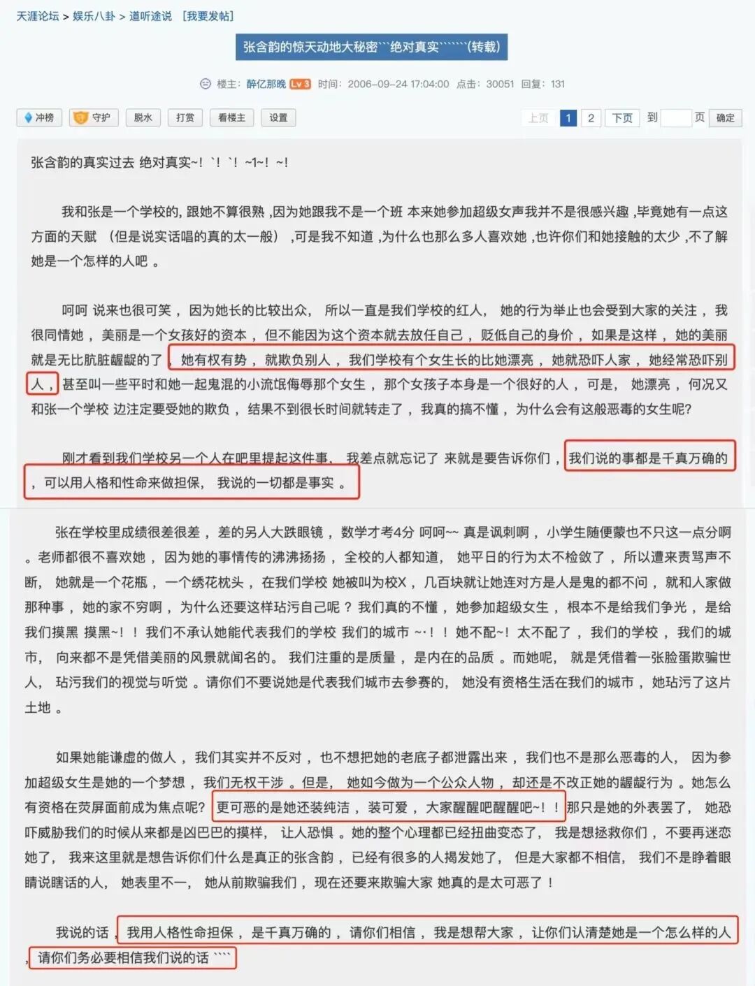 接着,有人打着“张含韵朋友”的身份开始造谣她的人品: