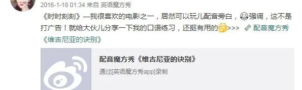 翻看她的微博,从16年开始她就一直在默默练习配音,一直坚持到现在。