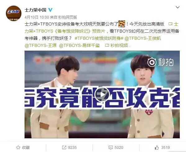 士力架早在4月2日就放出彩蛋,让正在备战中考、高考的学子们惊出一身冷汗——“TFBoys为何决裂”,并承诺11号解密。