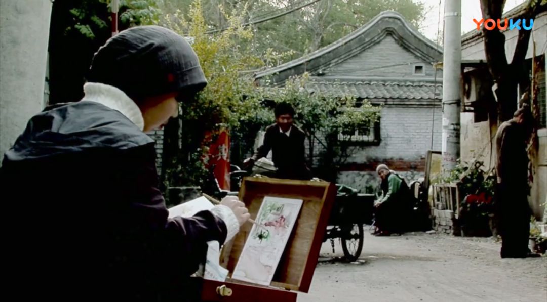 不上课的时候,她就提着箱子,在北京的胡同里画画。