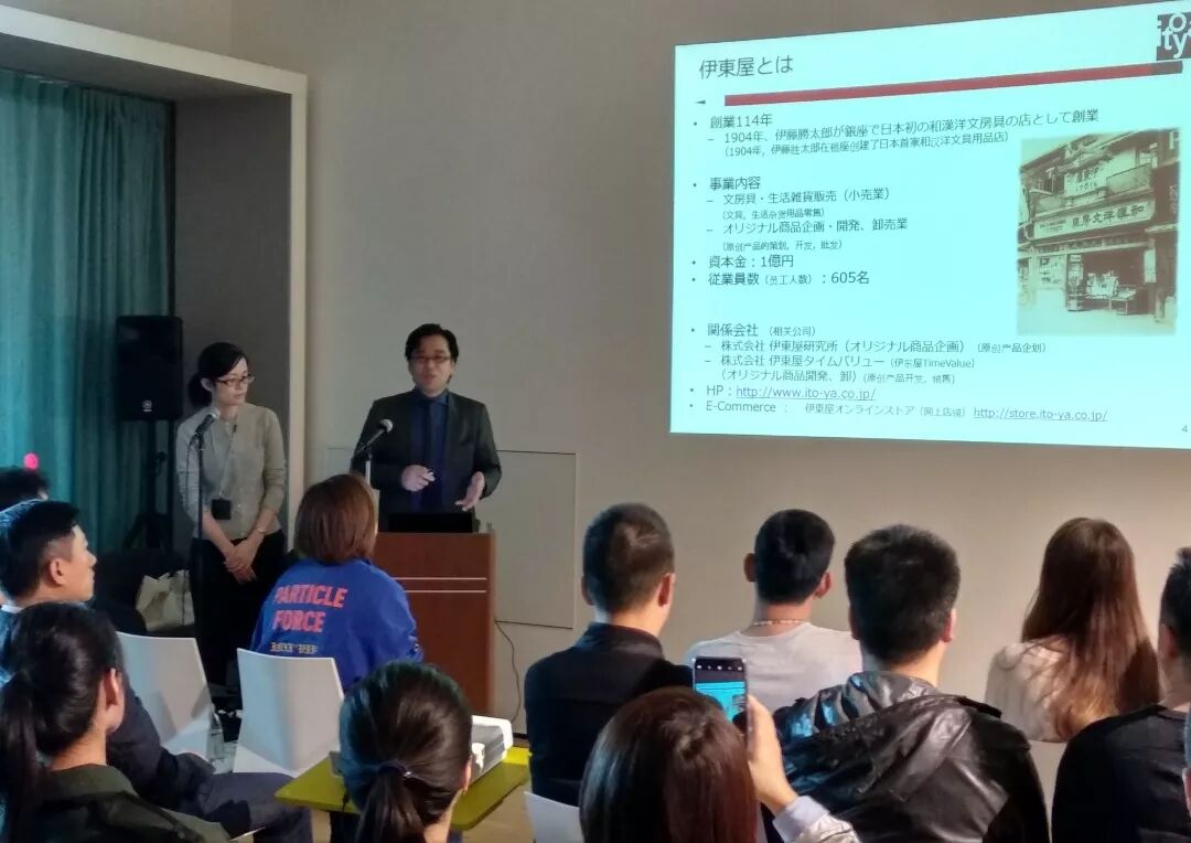 10月22日下午,访学班企业家来到位于银座的百年文具店——伊东屋,探索日本百年企业老而弥坚的长寿基因,执行总裁松井干雄为大家作主题分享。松井干雄告诉大家,给与消费者最大化的场景营造是伊东屋走过百年,又能在时下致胜的关键。
