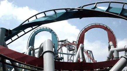 话说佛罗里达人民还真是喜欢过山车啊,在环球影城又看到好几个,这是其中一款可以玩双飞的过山车: