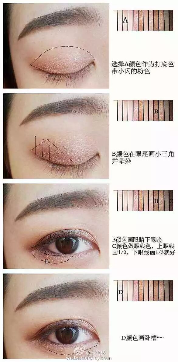 虽然Make Up Revolution的显色度没有Naked 3那么强,但只要多叠加几遍就能达到同样的效果,晕染都是一样的好晕染,只是带珠光的几个颜色有些飞粉,这点在Naked 3上也一样有,具体使用方法你们可以参考下图。