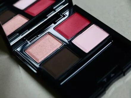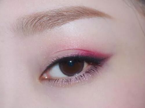 眼影的显色度打满分,适合冬天,别觉得没尝试过红色系眼影就吓个半死,只要你胆够大,肿眼皮也有春天。先用浅色打底,粉色大面积晕染,最后用红色勾勒眼尾,很美的暧昧妆,妆效不会比SUQQU差。