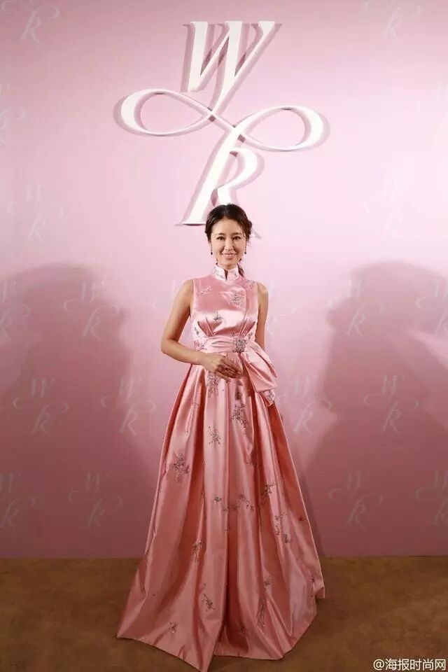 林心如穿一袭粉色连衣长裙特别显范儿,腰间收腰的设计,很显身材!