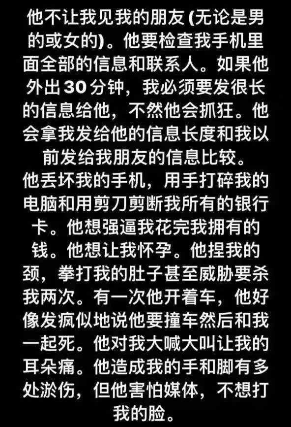 “和他在一起的日子像是生活在监狱里,他是个控制狂、暴力狂和妒忌心很强的人。 ”