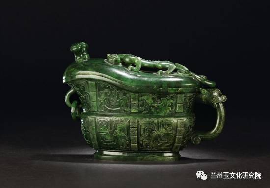 2、仿古玉器。仿古代的玉器、青铜器和陶瓷器等形制、纹饰制作的碧玉器皿、赏玩玉器等,有的在同一器物上同时并用多个朝代的纹饰,并刻上乾隆御题,在玉器上出现了御制诗以及各种诗文,这类作品虽然主要是迎合统治者的对以前朝代一些艺术品的喜好而制作的,但在玉雕工艺和艺术水平上代表了我国古代制玉的最高成就,有非常重要的历史和玉雕艺术研究价值。