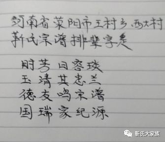 河南新郑西关靳洞,禹州鸿畅靳家沟的靳氏排辈:心维思文,道宗承宣,世守孝友,名利德全。