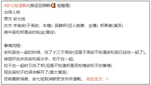 事情的起因是韩国车模宇宙安在INS中发布了一段她和安七炫并排躺在汗蒸房内拍摄的视频,两人互动亲密,最后还接了吻。