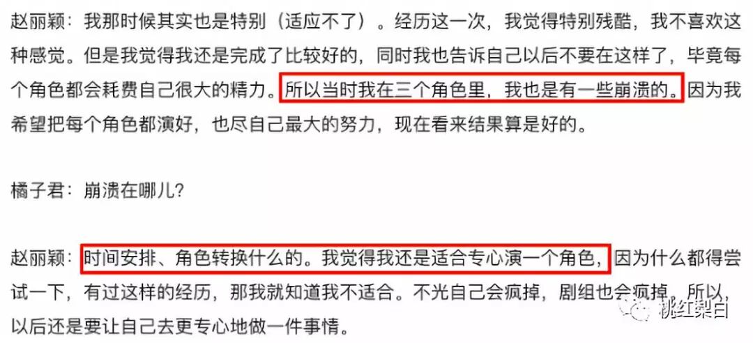 而在采访中,赵丽颖就说过:三个剧组连轴转让她差点崩溃。