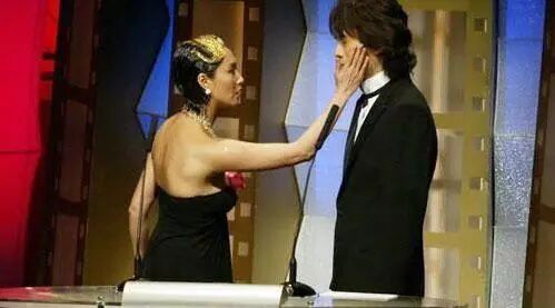香港著名艺人黄子华在某次颁奖礼上,组委会虽然再三叮嘱不要乱讲,可一上台他仍改不了老毛病。他看着搭档朱茵张口就调侃:朱小姐,你那个朱是不是母猪的猪呀?气得美女强装笑脸。接着,他又问:今天这个最佳动作奖是谁呀?突然,“啪”的一声,朱茵竟当场给了黄子华一耳光,完了她还笑着说:这个是动作奖,当然要先给你一个耳光了。