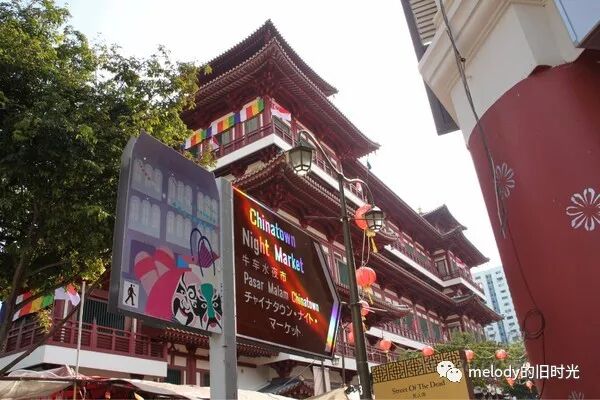 出了寺庙,前行是佛牙寺龙华院。供奉着珍贵的佛牙舍利。从1980年务舍葛帕喇大和尚在缅甸蒲甘发现佛牙舍利到2002年法照大和尚受托建寺,一直到2005年这座兼具唐代建筑风格与元素并结合了佛教曼荼罗(坛场)设计风格的寺庙拔地而起。几乎每个来新加坡旅行的中国人到牛车水第一件事就是探访佛牙寺,仿佛在旅行的途中给心灵找个归属的驿站。