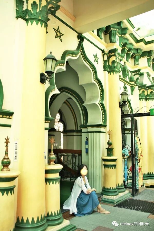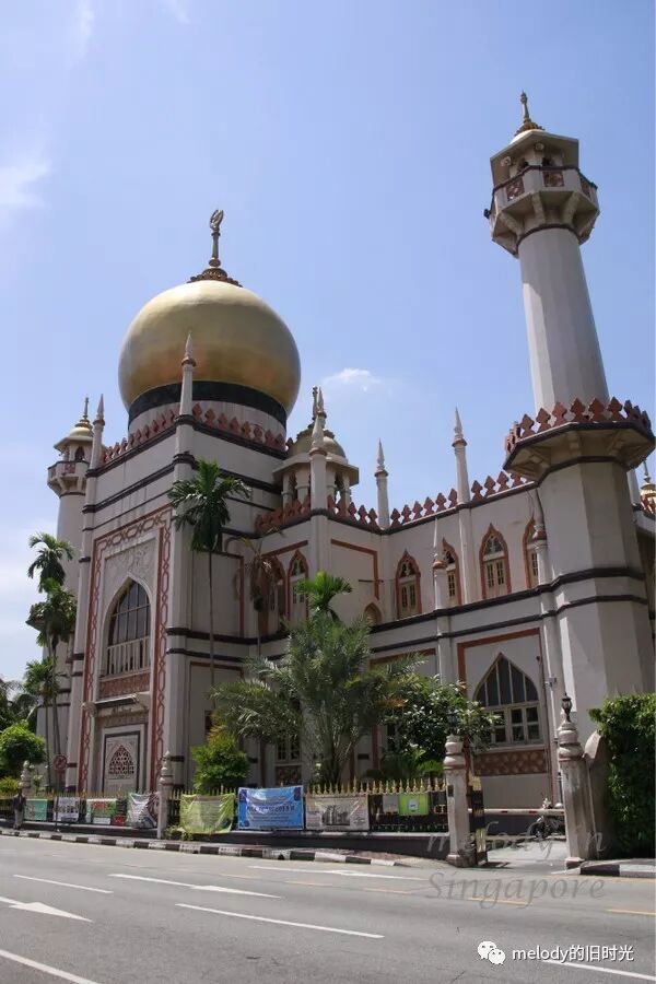 1824年至1826年,柔佛苏丹东姑胡先从英国东印度公司得到资金,在他的宫殿旁边建造一座清真寺, 1924年,清真寺建立一百周年,在老回教堂的基础上扩址增建,重建后这座新加坡最大也是最壮观的宗教建筑的主祈祷堂可容纳多达五千名教徒同时进行礼拜。两座金黄色的大圆顶,4个对称的宣礼塔,以及许多小亭和小塔,让人仿佛置身于一千零一夜的故事中。