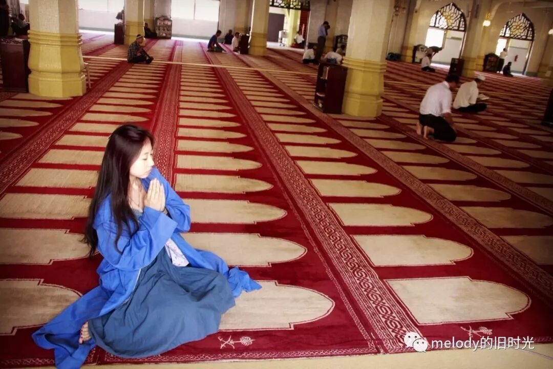 苏丹回教堂,每天上午9点—12点,下午2点—4点对外开放,教堂内禁止穿鞋进入,所有人都把鞋子摆放至台阶下,男性上衣必须有领有袖,穿长裤。女性上衣必须有领,袖长及腕,裤长及脚踝。我穿了一条过膝的长裙,于是被挡在门外。在穿上教堂内备有供访客穿用的雨衣一样的罩袍后,终于笨拙的走了进来。教堂内,一群男子躺在地毯上横七竖八的睡去,仿佛在神的庇护下,一切都是那么的安全。