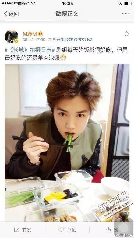 吃个肉夹馍,也要开心到发微博,要造,小鹿可不是随随便便发微博滴人,每周五一次哪~~