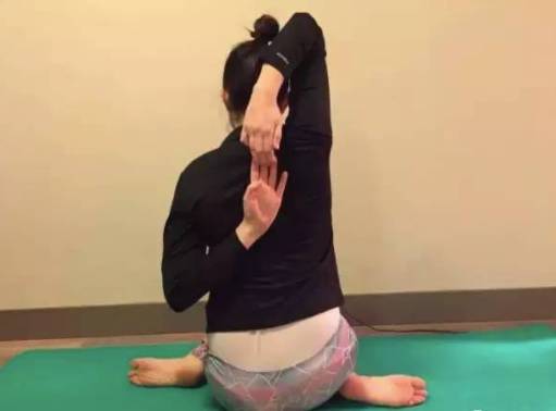 ④如果双手接触不到,可以使用瑜伽绳做辅助。