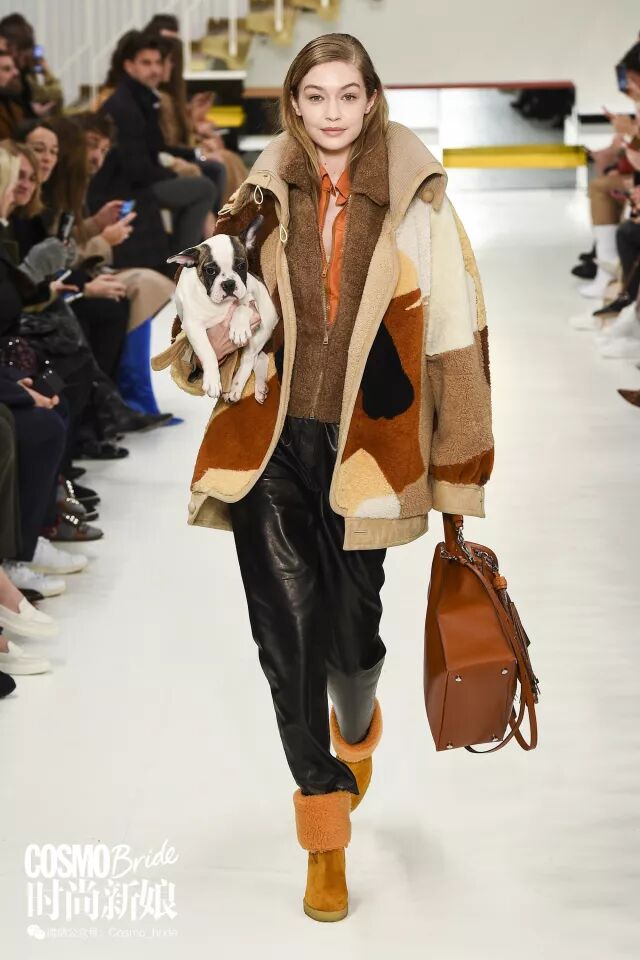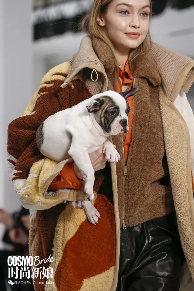 当Gigi Hadid抱着狗子入场,所有观众就已经被萌化了。