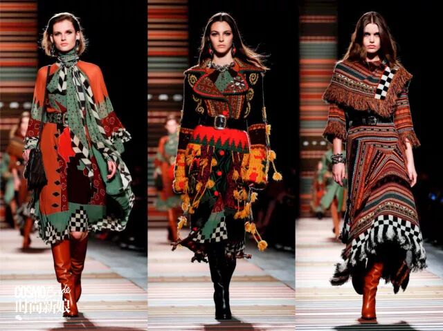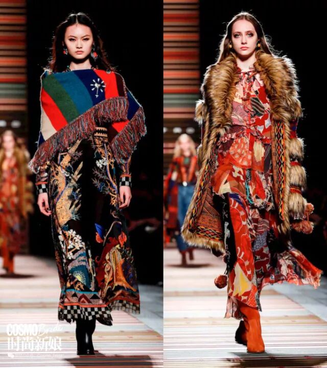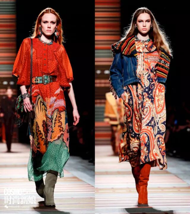设计师Veronica Etro和Kean Etro的父亲,即ETRO创始人Gerolamo Gimmo Etro早年老往印度跑,而那里则成了现在ETRO印花的灵感来源。通过波西米亚风与印度民间服装元素的结合,这个系列就像万花筒一样迷人。