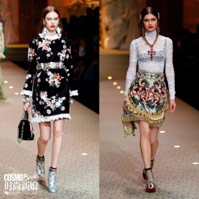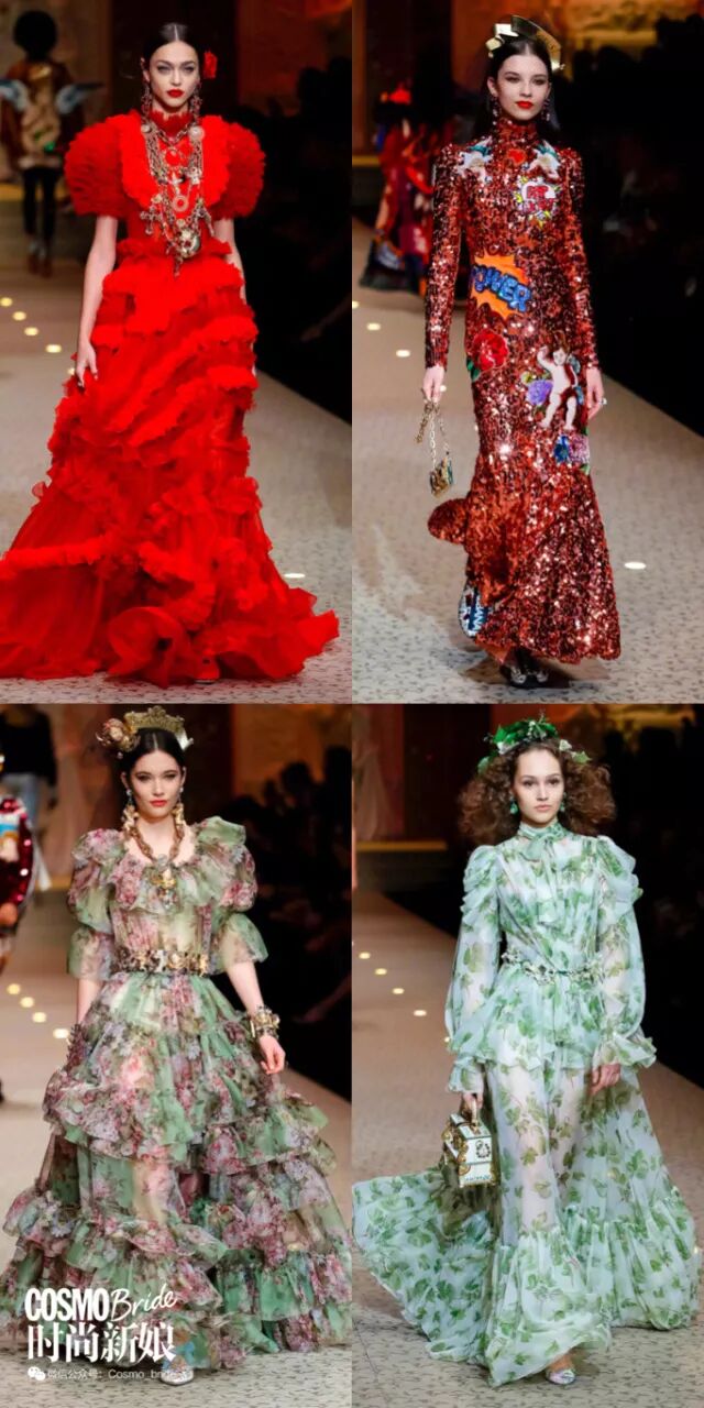Dolce & Gabbana在米兰时装周也是跟Gucci一样属于华丽卦。他们有种宗教主题跟西西里主题每季轮番出现的嫌疑,但不妨碍以这两个主题为出发的东西就是很美的事实。