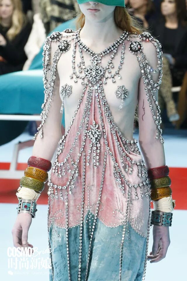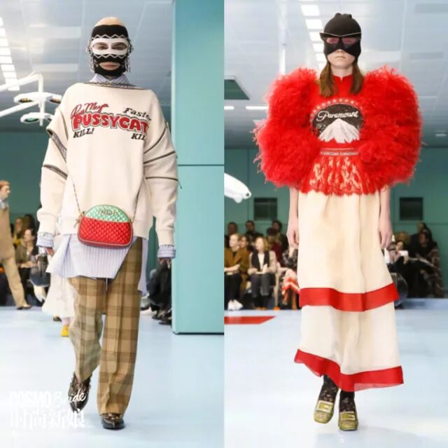 如果这些设计让你觉得困惑,不妨当做是一种开阔眼界,从Gucci式的美中寻找乐趣~下图向左划看看更多细节~