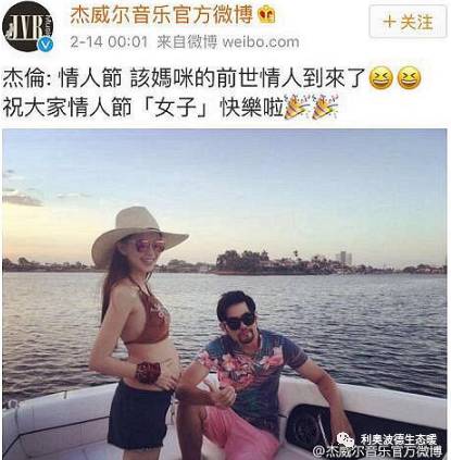 2月14日,杰威尔官方微博晒出周杰伦与昆凌度假的照片,并写道:“杰伦:情人节该妈咪的前世情人到来了。祝大家情人节‘女子’快乐啦。”昆凌这次是真怀上二胎啦,照片中,昆凌穿着清凉,露出肚子,明显看到腹部隆起,周杰伦坐在一旁戴着墨镜,表情酷酷的。这次在情人节前公布喜讯,也是让网友很是欢喜:“二胎!!!!!!!!啊啊啊啊啊啊。”“杰伦已经有二胎了 然而我依旧是单身狗。”“情人节第一个暴击!不过我被虐的很开心。”
