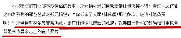 而且郑爸爸也是特别喜欢林依晨,还对郑元畅说,你都亲了人家那么多次了,还不娶她?