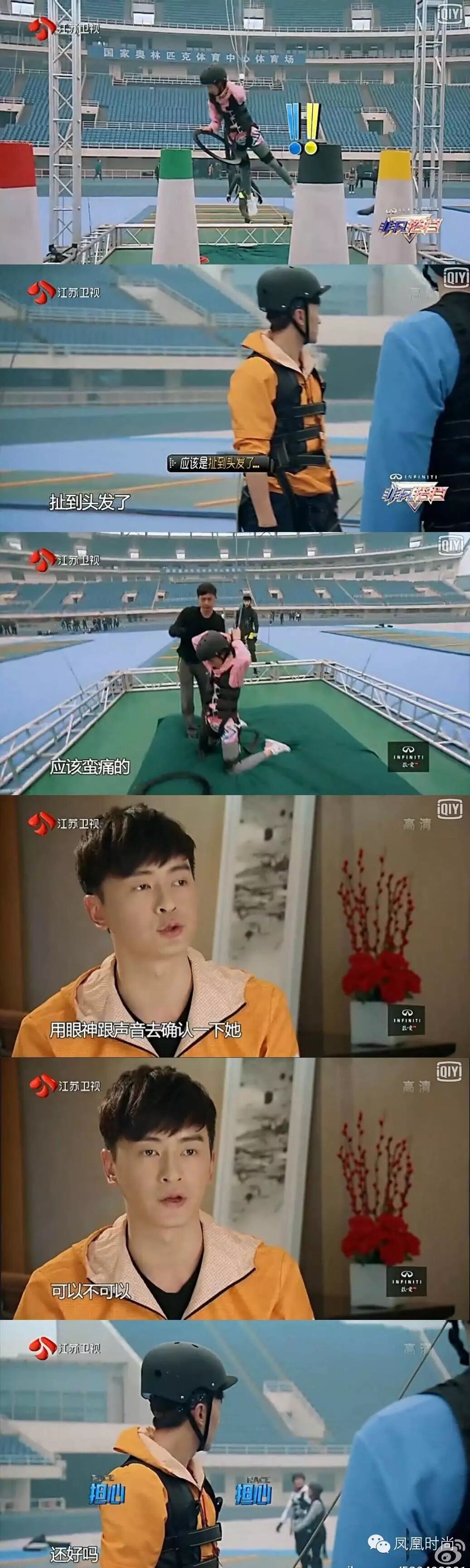 一起挑战任务的时候,因为担心依晨会受伤,郑元畅更是把每个动作都尽力做到最好的姿势去保护她。