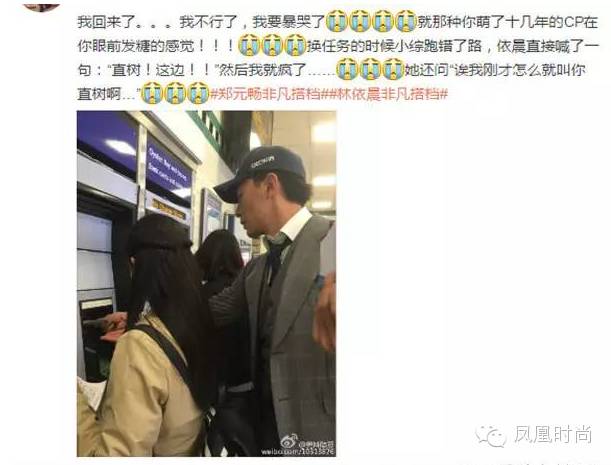 最近在真人秀节目《非凡搭档》中甜蜜聚首的林依晨和郑元畅,让凰尚毫无防备就陷入了“直树湘琴”的回忆杀中!不仅林依晨在节目里把郑元畅喊成“直树”,录完节目的小综在街头还一把搂过林依晨对她说:“我们回家。”在“胡霍横行”、“耽美上位”的现在,看到凰尚少女时期迷到不行的这对cp在综艺里再次同框,真的是感动到泪崩好吗?!