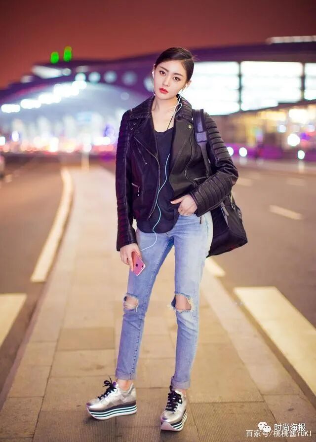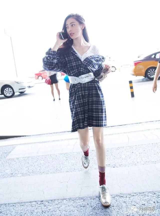 张天爱的大多数穿搭均是较为性感成熟的,而上图中现身机场的她,身着衬衫连衣裙,纯美清新之感扑面而来。她所穿着的衬衫裙,创意设计独特,一侧露肩的穿法个性又不易撞衫,再附加上白色腰带,提高腰线的同时,提升整个人的气质气场。喜爱衬衫裙的女生们,也可以尝试着在腰间加一条腰带,显瘦显高。