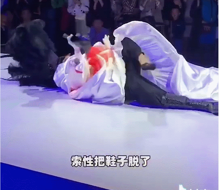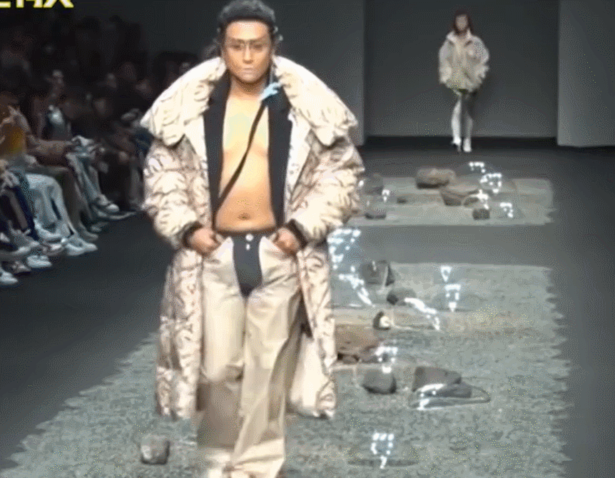 秀场里,他裸露满是赘肉的肚子。