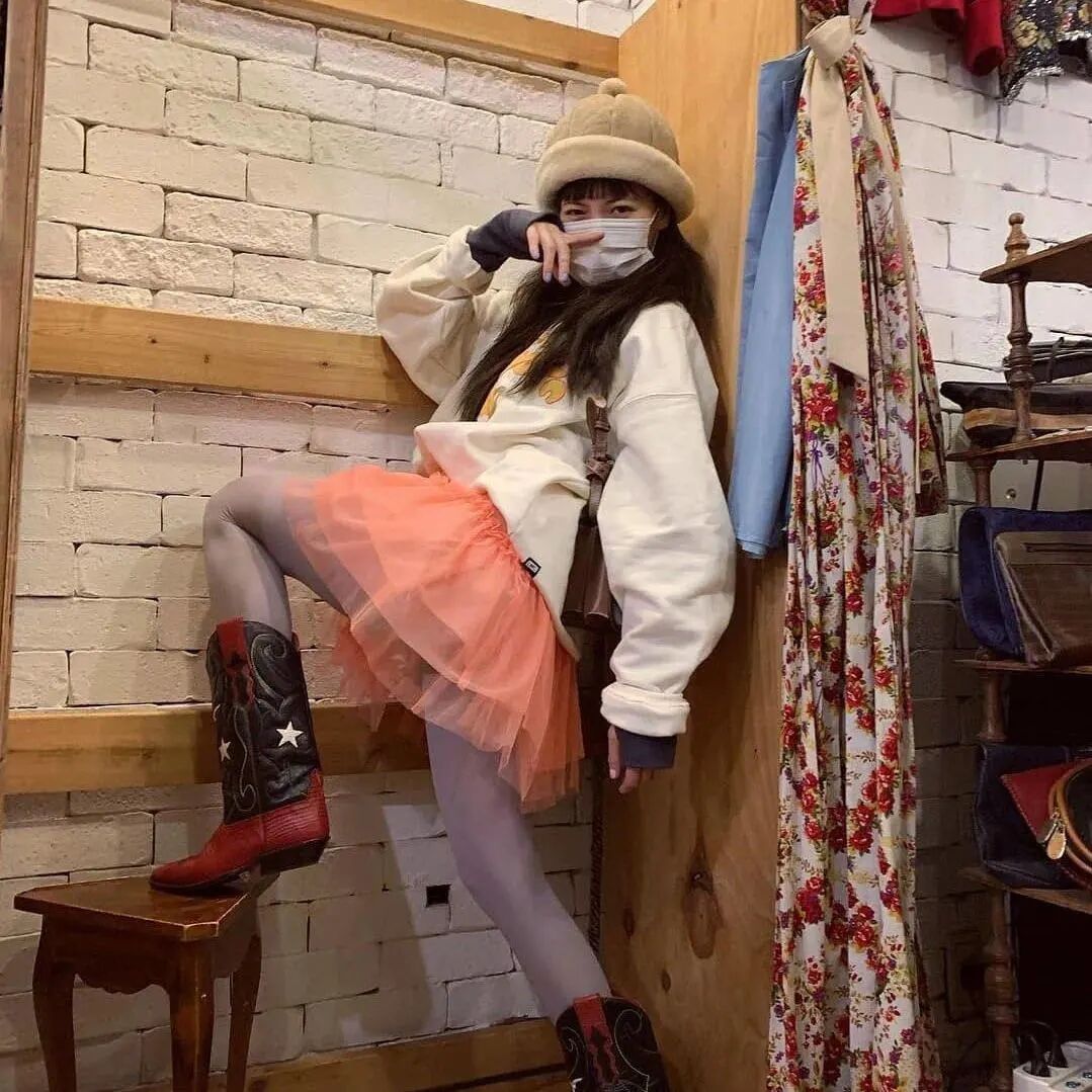于是便有了下图中“纱裙+长裤”的魔鬼组合。