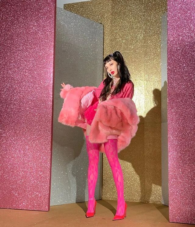 像是大胆惹火的红色,普通人穿可能就是艳俗了,在泫雅身上莫名有种禁欲感。