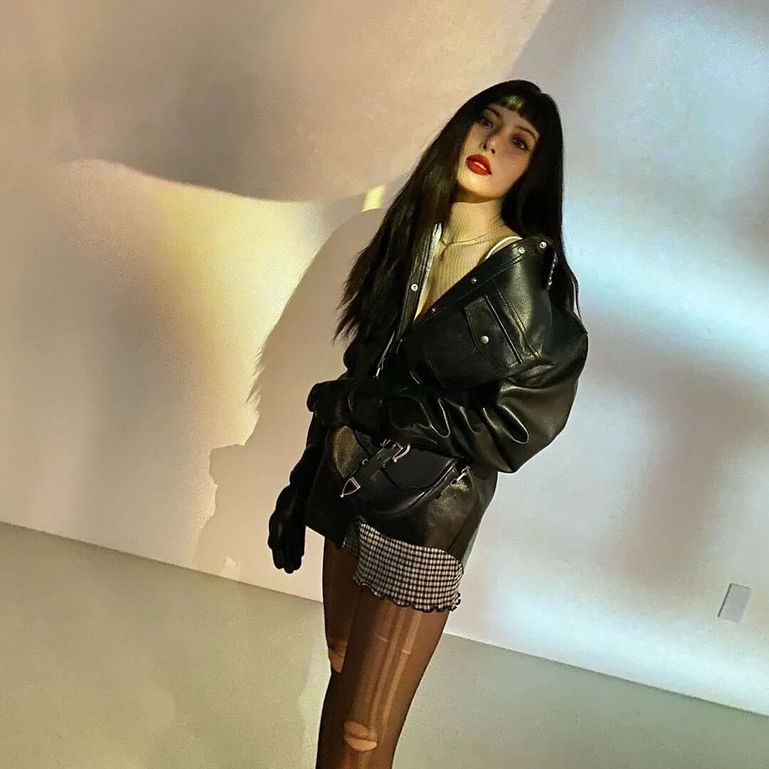 破格的渔网袜她也很爱,不过没双筷子腿还真不敢穿!