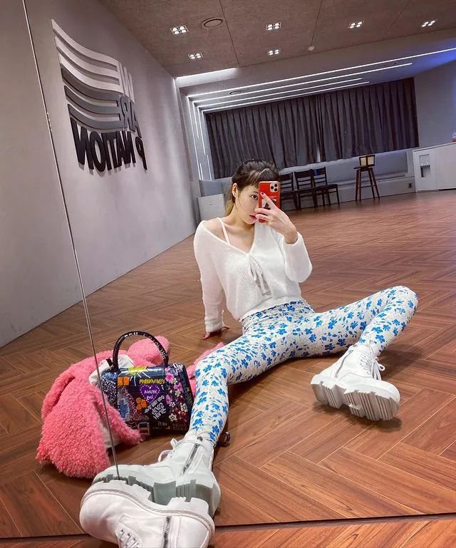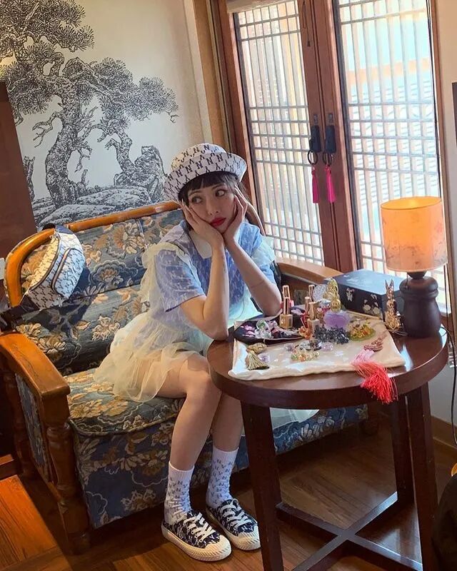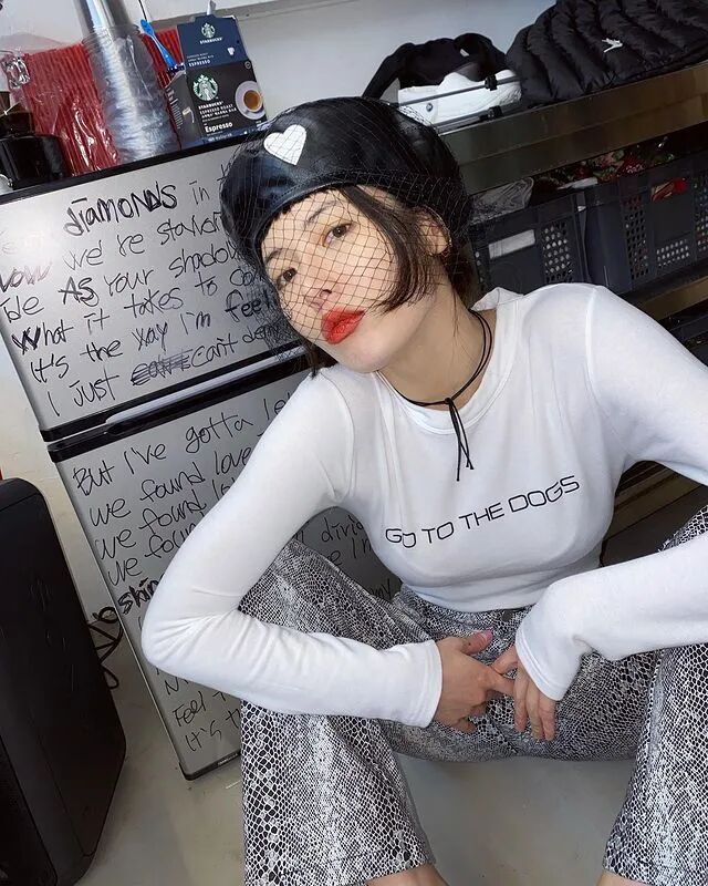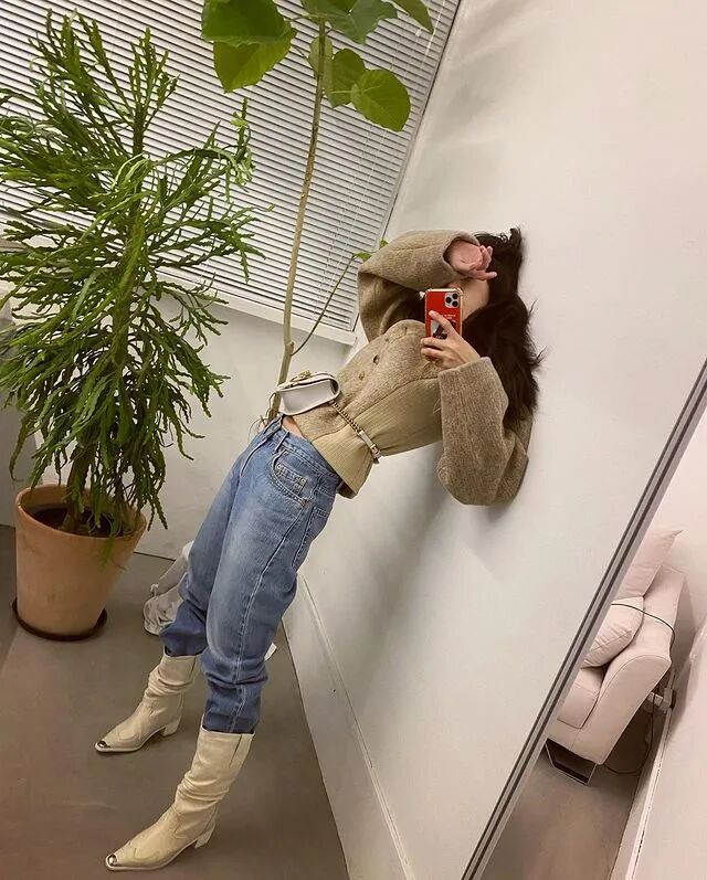 姿势安排了,还得借助道具才更有氛围,泫雅的日常照中经常利用镜子来记录穿搭,但也不是那么好学的!