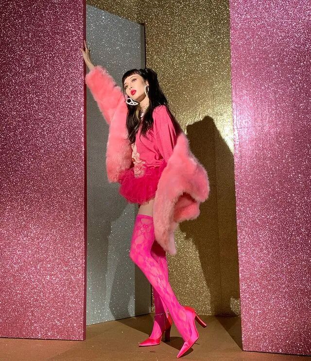新专辑里都必须有网纱裙的强势出镜,不得不说舞台效果是拉满了,仿佛真人版的Barbie Girl~