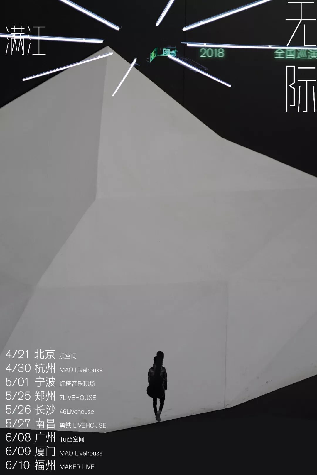 随着新专辑的推出,满江2018年“无际”全国巡演也即将开始,第一站北京站将于4月21日在乐空间正式开唱,除了新专辑中的歌曲,《归来》、《Mr.Man》等经典歌曲也将以remix的形式首次呈现。