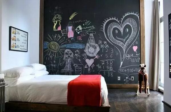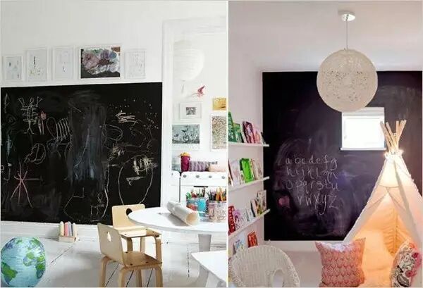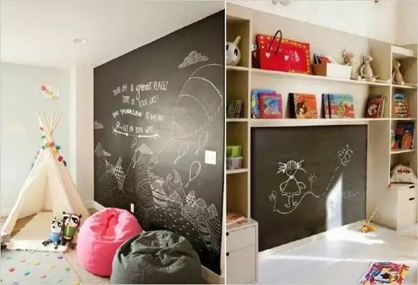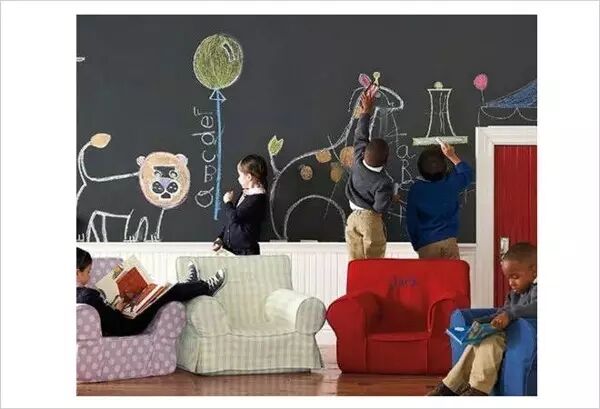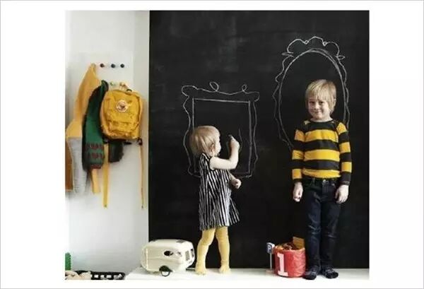 如果孩子真的很喜欢涂写墙面,直接把以免墙壁刷成黑板墙,让孩子任意发挥。