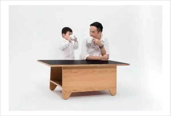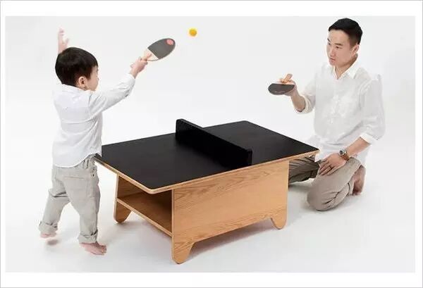 比如说以下这款茶几,它是一款专为儿童设计的茶几,实木材质的茶几安全性是无可置疑的,既环保又实用。这款茶几的独特之处在于它的创意,茶桌中间放一横版板可做乒乓球桌使用供家长而孩子娱乐。