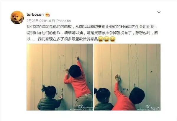 事情是这样的,”娘娘“孙俪在微博上发了几张等等和小花妹妹在墙壁上画画的照片。文中邓叔叔表示不能阻止孩子们创作的精神。此微博发表后,立马成为广大网友们争论的话题。