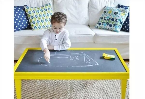 以上这两款即可以当茶几又可以当黑板的桌子是不是正合你的心意呢?为孩子创造一个“涂鸦”创作的空间,即不用多购置小黑板占室内空间,也不需要把墙壁涂黑。在画画时,孩子无需爬高爬低,上下走动,减少安全隐患。对于这种桌子,为了不破坏孩子的画作,在作为茶几使用时,可以在桌面上铺一张玻璃垫或者透明的PVC桌垫。一边欣赏孩子的画作,一边与客人喝茶聊天,这是一件多么美好的事情。孩子看到父母如此赏识他的“作品”,在另一种层面上,会更加激发他的创作冲动,其实,每个孩子都是画家!