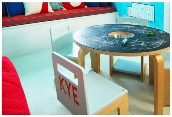 如果你觉得平时孩子会把粉笔乱丢,又或者老是忘记粉笔放哪儿了。以下这张桌子的设计就最适合你了。