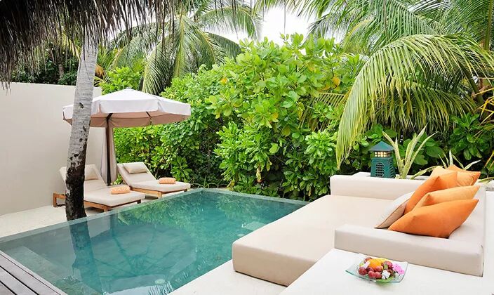 岛上,会有你的专属管家为你全程服务,岛上活动非常多,有酒会、有派对、有烧烤,每天都有不同主题的活动。岛内都是橘色系,跟蓝色大海搭配,颜色亮丽,沙屋前院+后院,有泳池,有露台,有幽幽的树林,有露天淋浴,还有小动物作陪。所有房间都有自己的私人泳池。