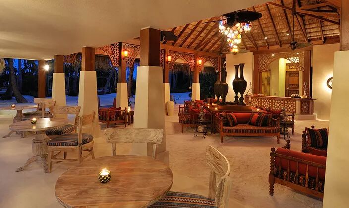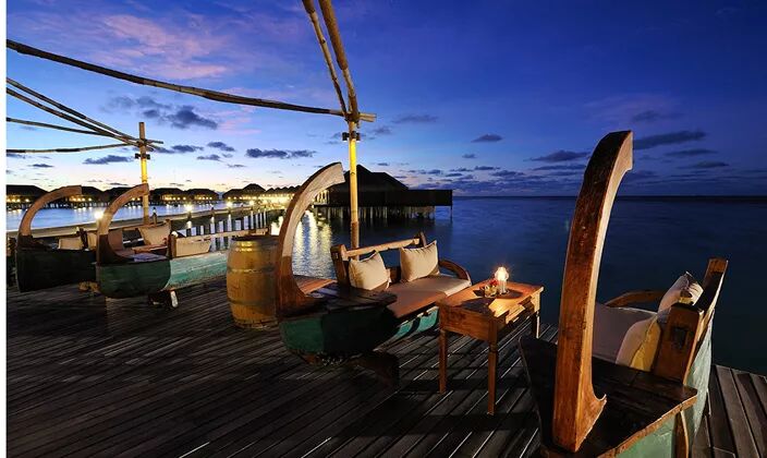 有着地中海风味的THE OCEAN BREEZE BAR是一个优雅而随意的理想休闲地,躺在摇动沙发上听着轻柔的音乐,或欣赏日落美景,享受马尔代夫的宁静夜晚。